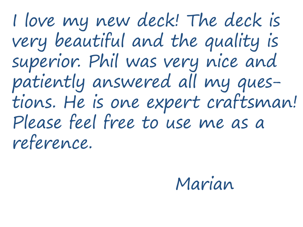 Adding a deck to your home or business doesn’t have to be stressful and it doesn’t have to break your budget. Call us and let us show you how easy the process can be. We look forward to hearing from you.